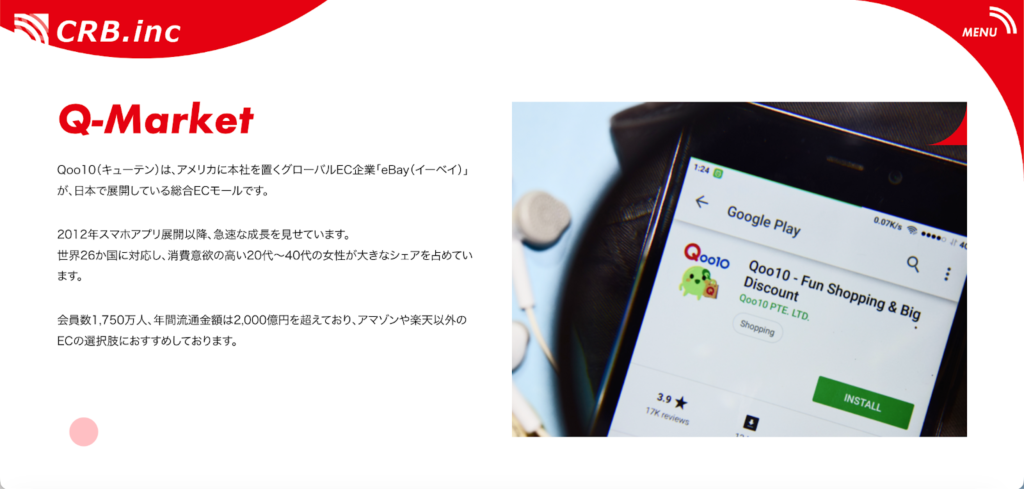 | Q-Market(株式会社CRB) | 最大90%のコストカット。リスクを抑えた成果報酬型 | 最小限の固定費+販売手数料 | Qoo10・Amazon |