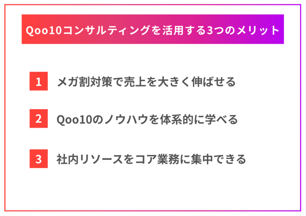 ここでは、Qoo10のコンサルティングを利用する、おもな3つのメリットを紹介します。
